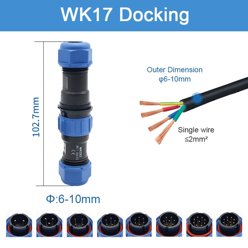 WKDQ dumaloq ko'p qutbli simli suv o'tkazmaydigan ulagichli lehimli Wk17 docking pinli vilka rozetkasi uchun M12 yoki M23 seriyali kabi ulagichlarni ko'rib chiqishingiz mumkin. Ushbu ulagichlar gidroizolyatsiya va ishonchli elektr aloqalari muhim bo'lgan sanoat va tashqi ilovalarda keng qo'llaniladi.