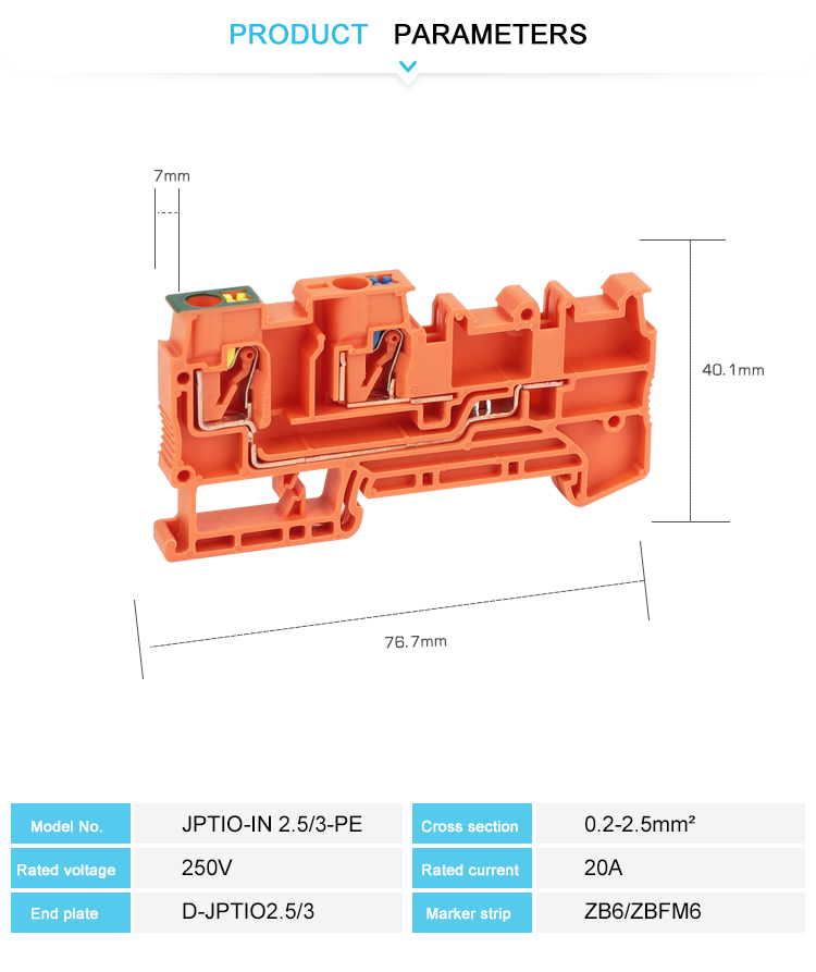 Yuqori sifatli kulrang JPTTB 2,5-PV Universal terminal blokidagi Push Ce sertifikatlangan