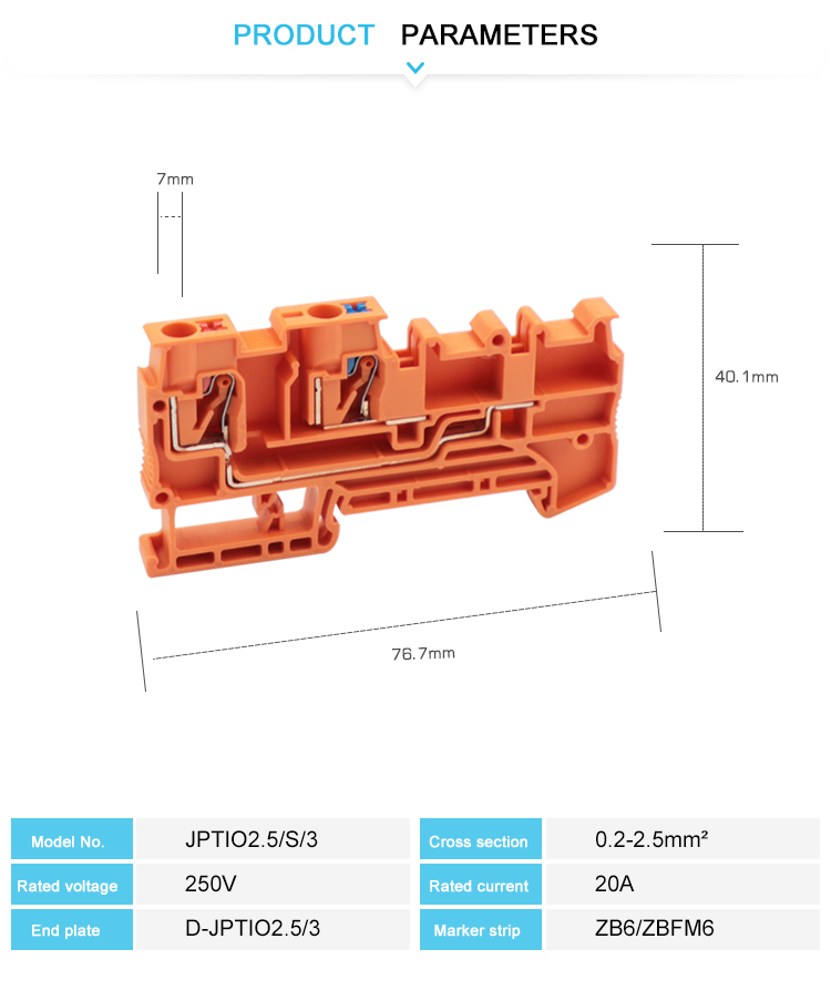 Sanoat avtomatlashtirish uchun mo'ljallangan JPTIO-intom bloki, JSTIGI-IN2.5 / 3 Terminal bloki unbehli tizim orqali tez va moslashuvchan kabelni yoqadi va elektr aloqalarini tezda konfiguratsiya va sozlashni qo'llab-quvvatlaydi.