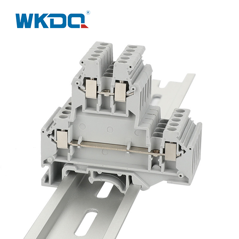 Ikki tomonlama dizayni: Ikki darajali terminal bloklari bo'sh joylar bilan ikki marta zichlikni ikki baravar oshiradi. Bu, ayniqsa bo'sh joy cheklangan bo'lsa, potentsiallarni samarali taqsimlashga imkon beradi. Ko'p darajadagi dizayni simlarni soddalashtiradi va ko'proq uyushgan va ixcham o'rnatishga hissa qo'shadi.