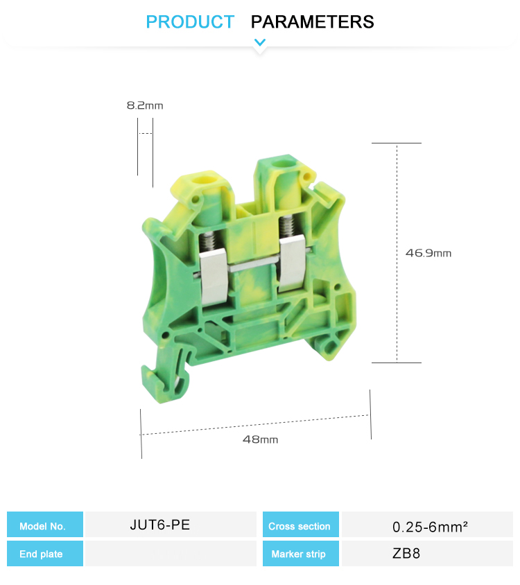 UT6-pe yuqori samarali o'tuvchi terminal bloki sanoat va tijoratda ishonchli makonlar uchun maxsus ishlab chiqilgan va DIN RAPS bilan o'rnatilishi oson. Vida ulanish - tebranish va havo o'tkazmaydigan mis simlariga mos ravishda tebranish va havo himoya. Yuqori sifatli alangali peshqadam materiallar issiqlikka chidamli va ta'sirli, sanoat standartlari. Ular qattiq stsenariylar, masalan, boshqaruv kabinetlari va elektr tarmog'ini taqsimlash tizimlari kabi samarali va barqaror eritmalarni ta'minlaydigan.